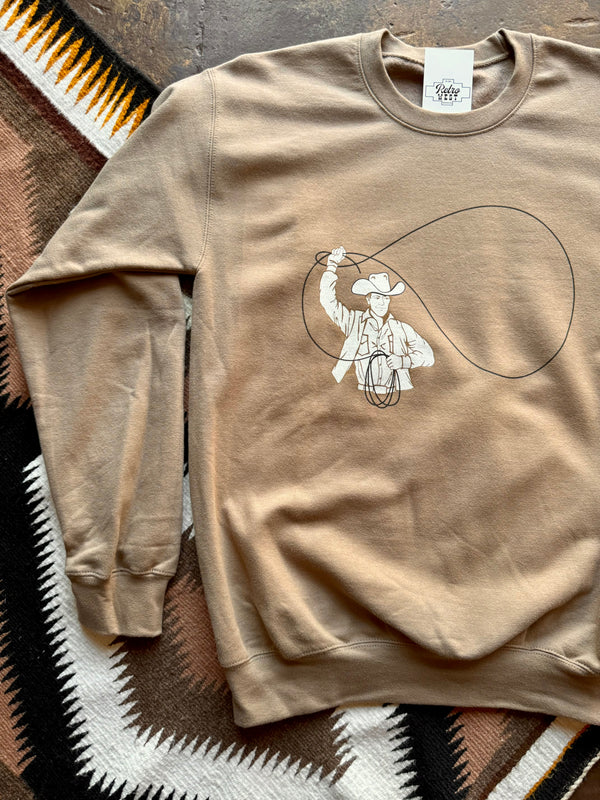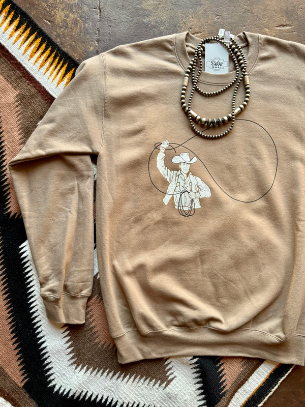Brown Sweatshirt with Cowboy and Big Loop Graphic 80% Cotton 20% Polyester