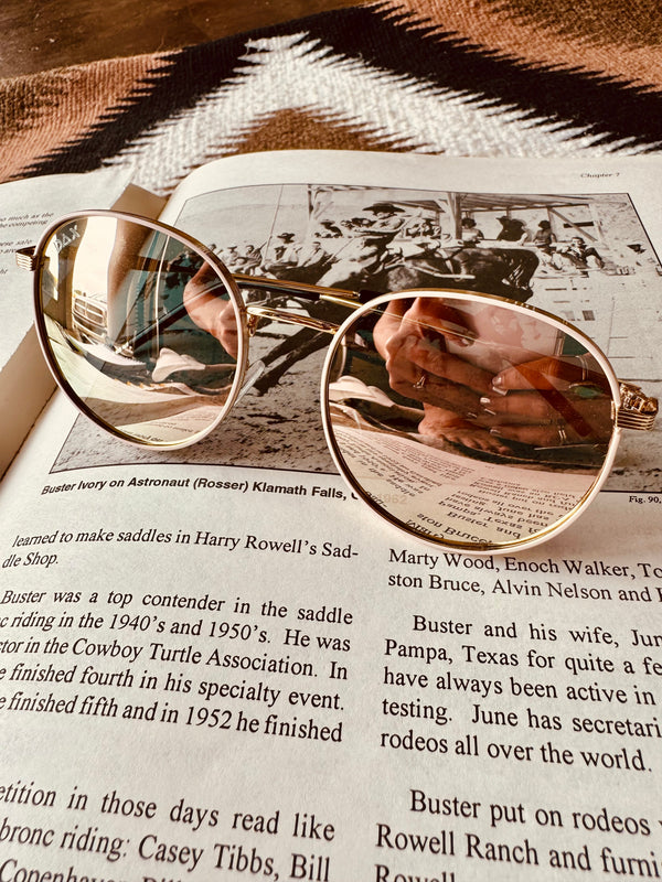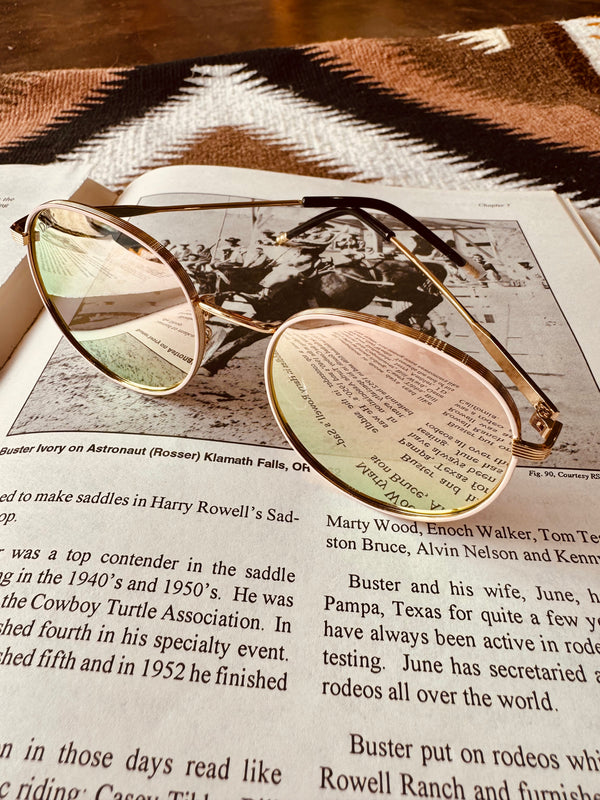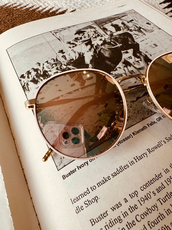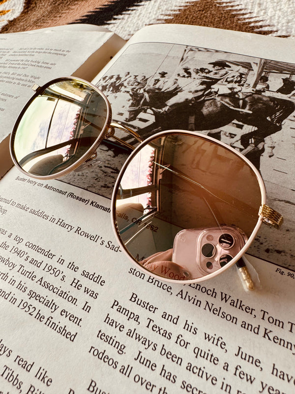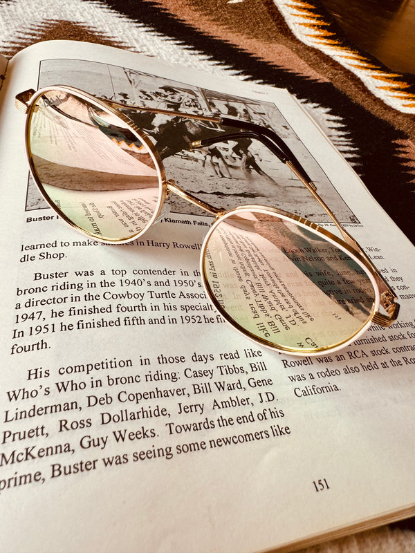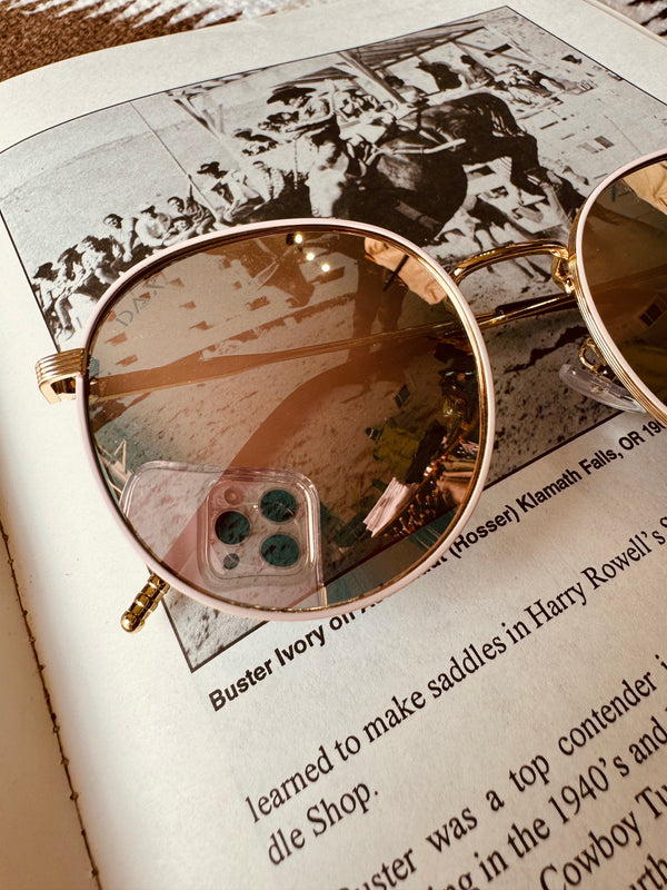This playful pair features a round, bright frame that's both eye-catching and lightweight. Every pair of glasses come in a DAX Eyewear box with a storage pouch and cleaning wipe. Gold frame with hot pink mirror lens Small/medium frame size...