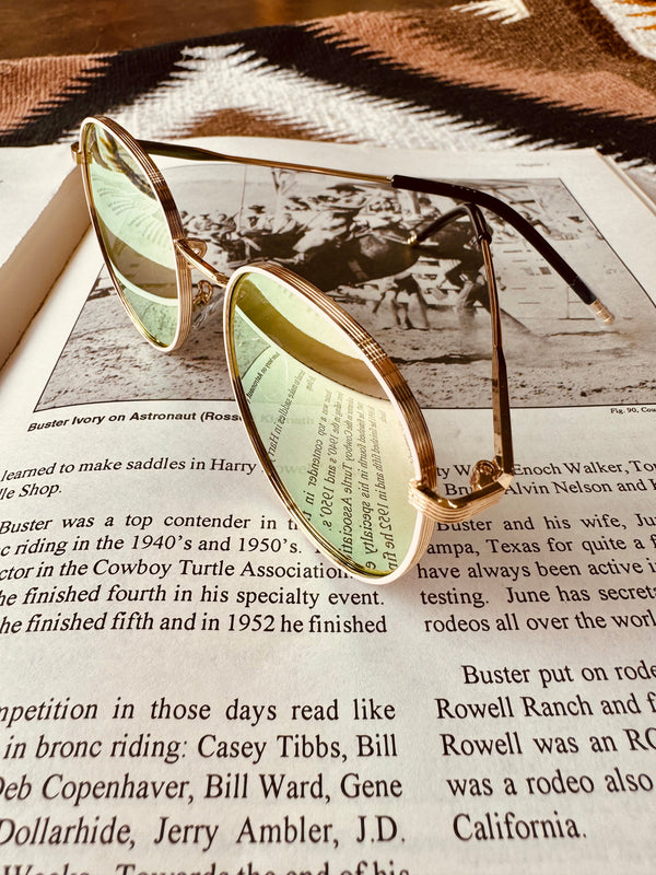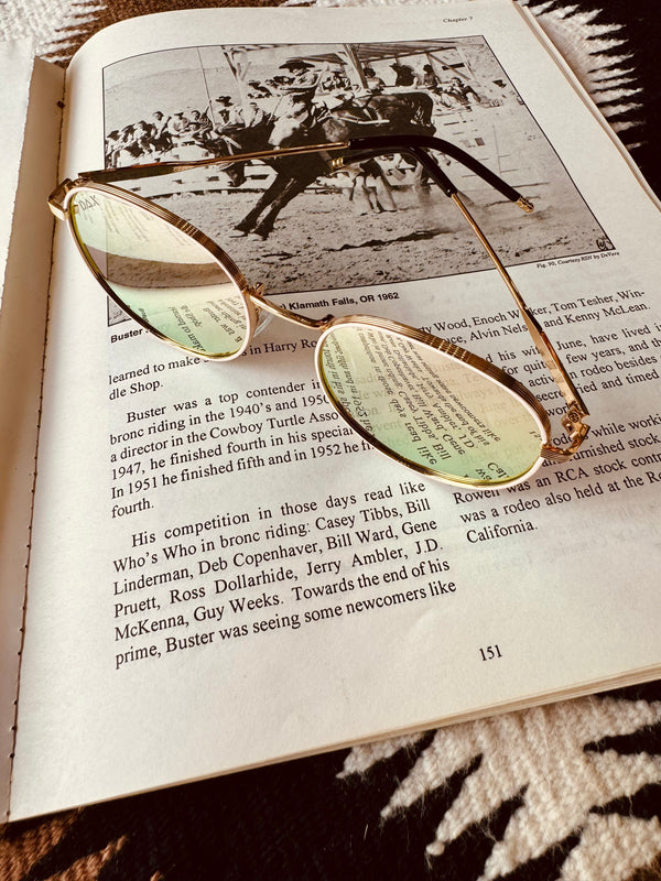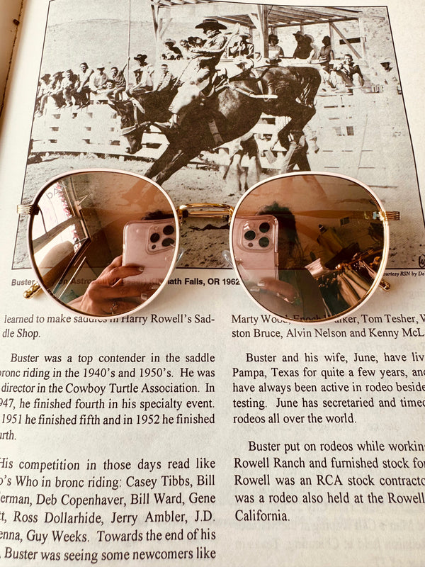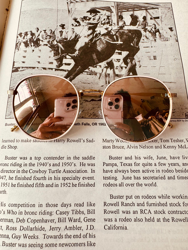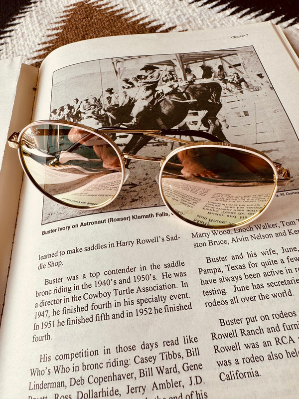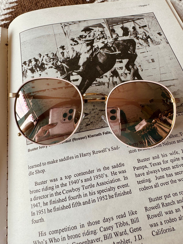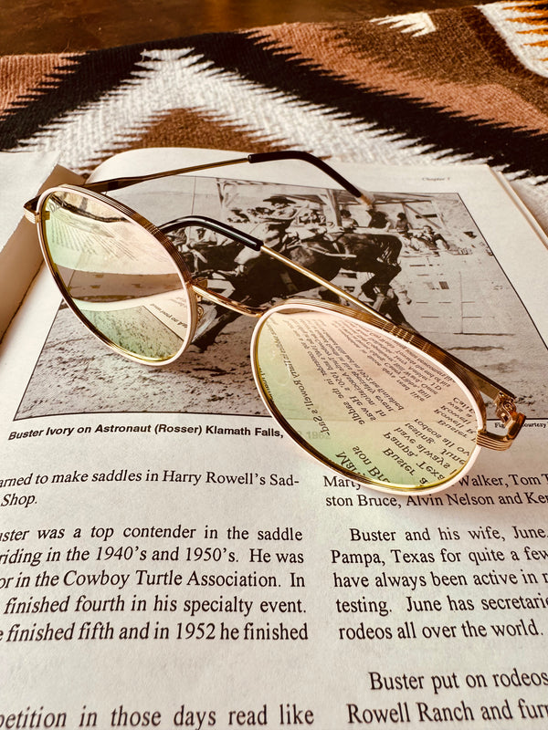 This playful pair features a round, bright frame that's both eye-catching and lightweight. Every pair of glasses come in a DAX Eyewear box with a storage pouch and cleaning wipe. Gold frame with hot pink mirror lens Small/medium frame size...