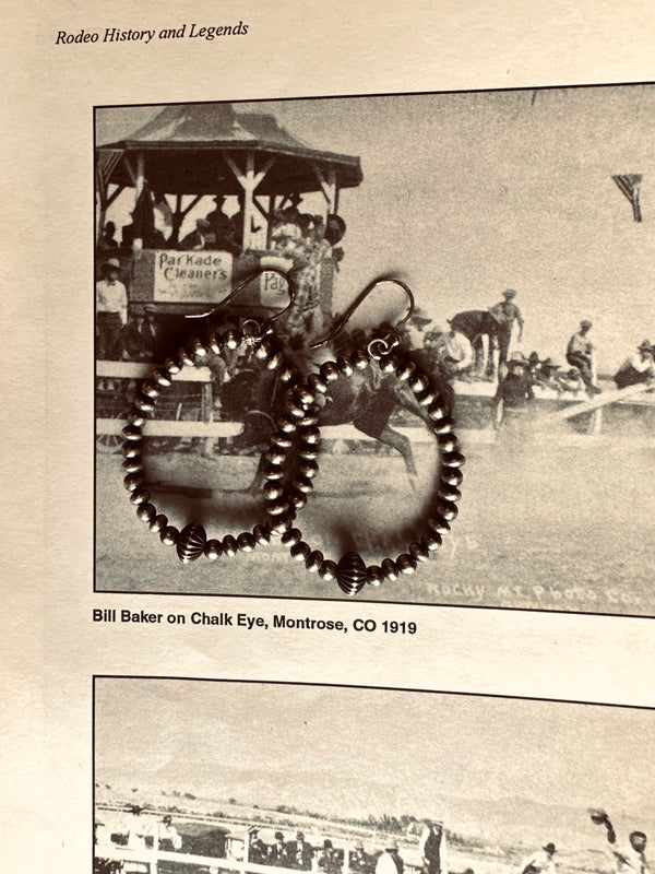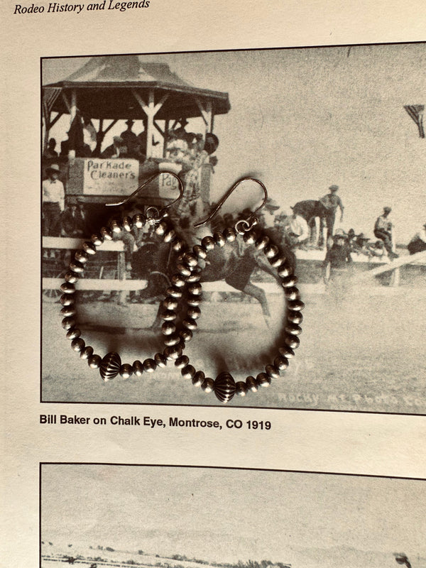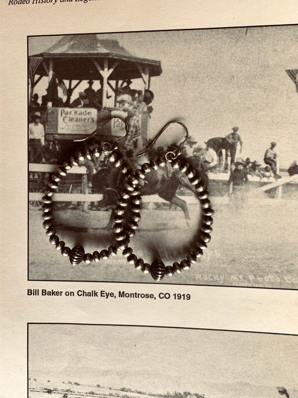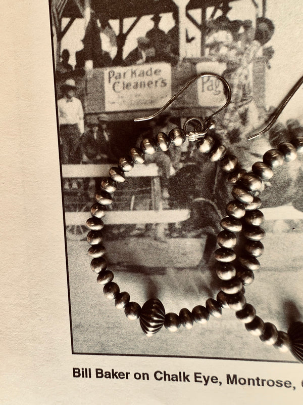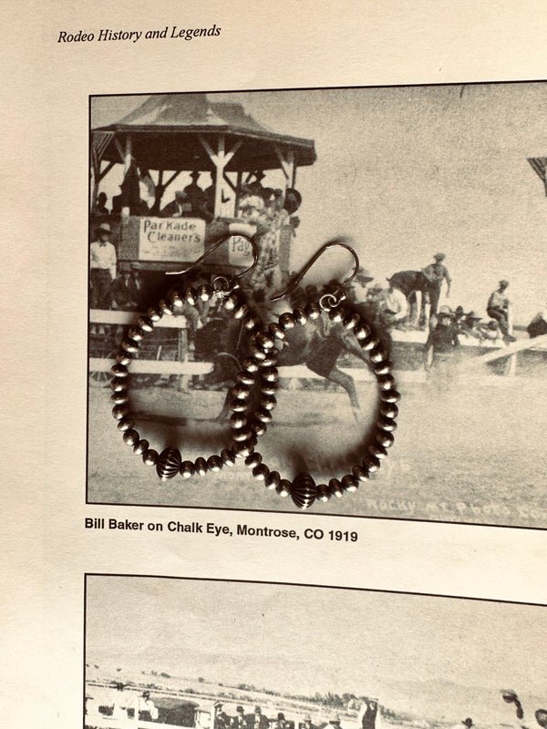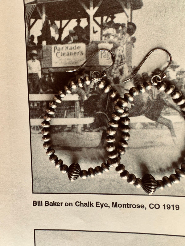 Sterling Silver Navajo Pearl Beaded Hoop Earrings w/ Fluted Saucer Navajo Pearl  2.5”