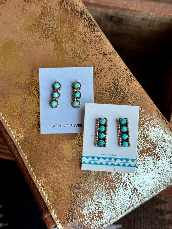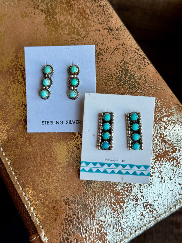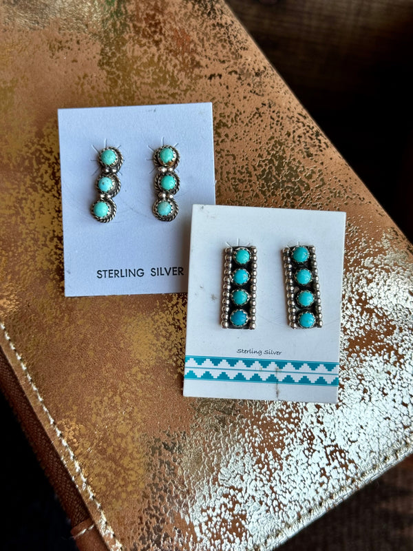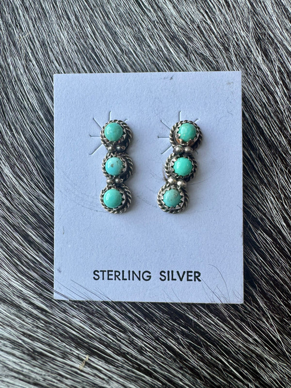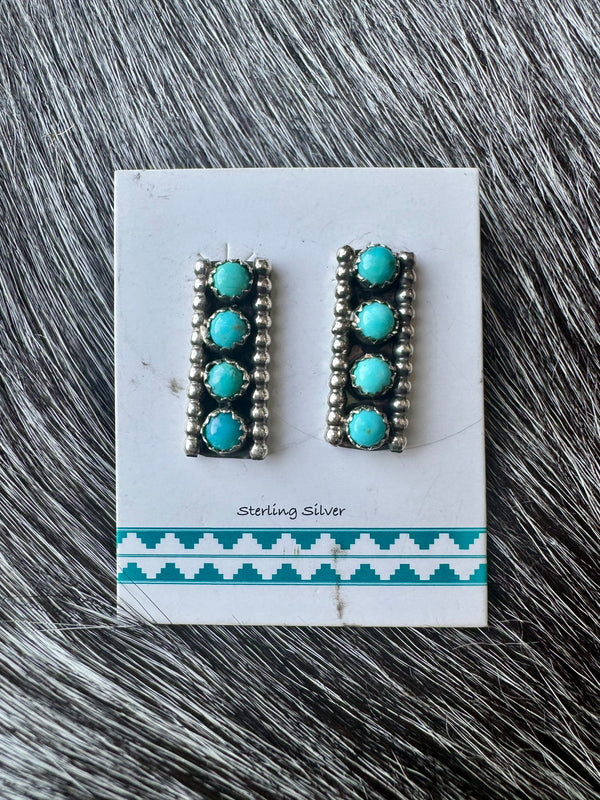 Turquoise Dotted Sterling Silver Line Stud Earring