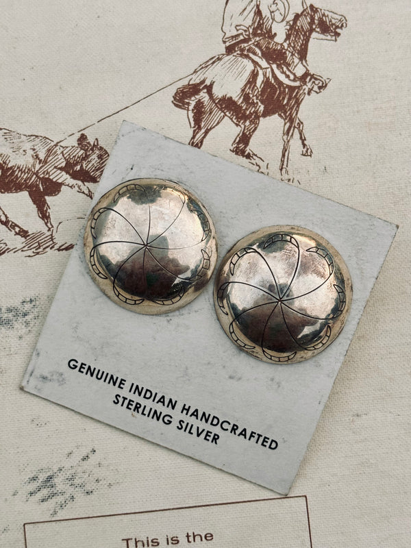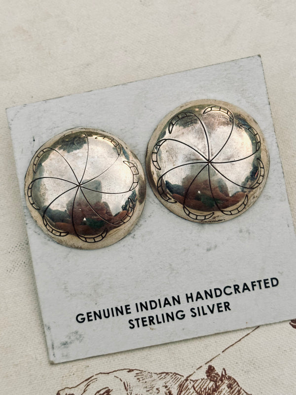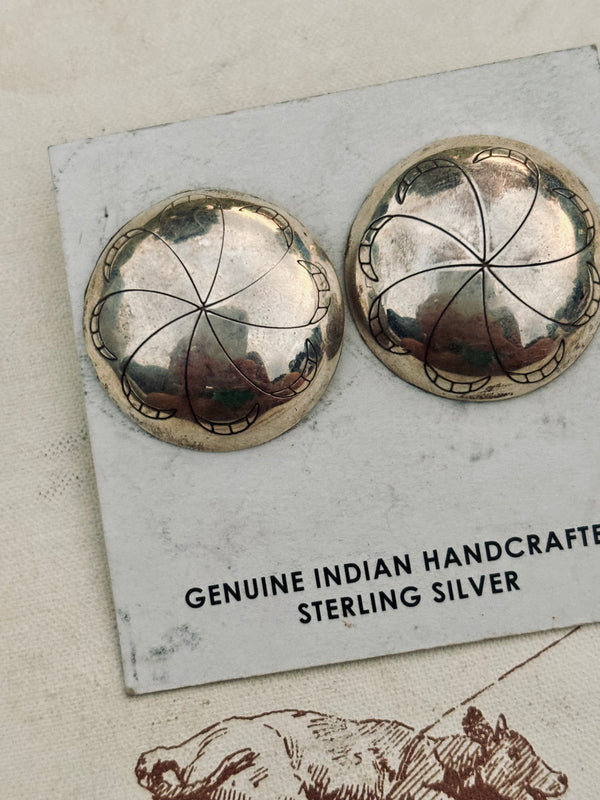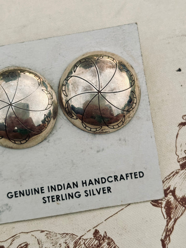 Large Round Concho Studs Sterling Silver Approximately 1” x 1”