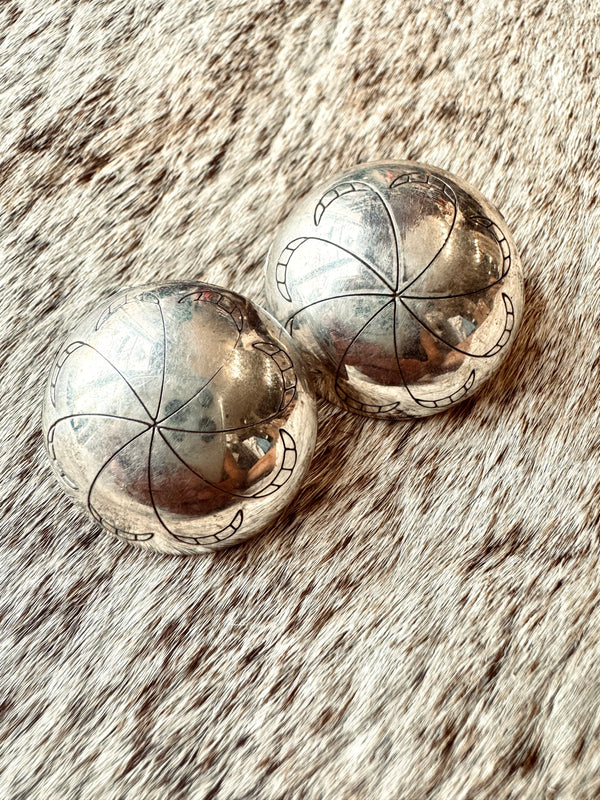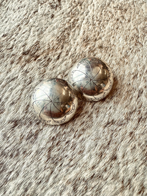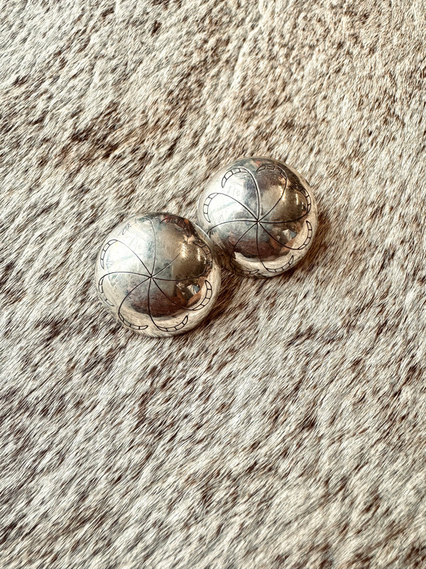 Large Round Concho Studs Sterling Silver Approximately 1” x 1”