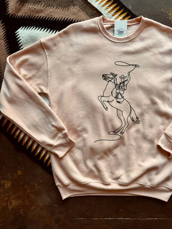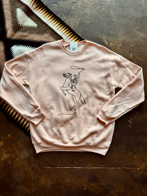 Sand Pink Sweatshirt with Cowboy & Rearing Horse Outline Graphic 52% Cotton 48% Polyester