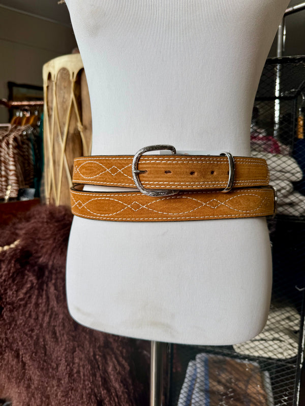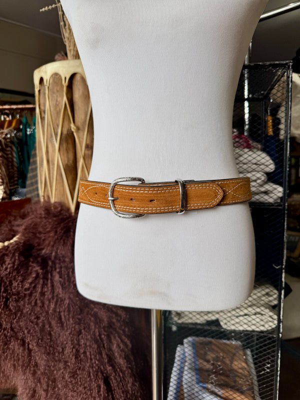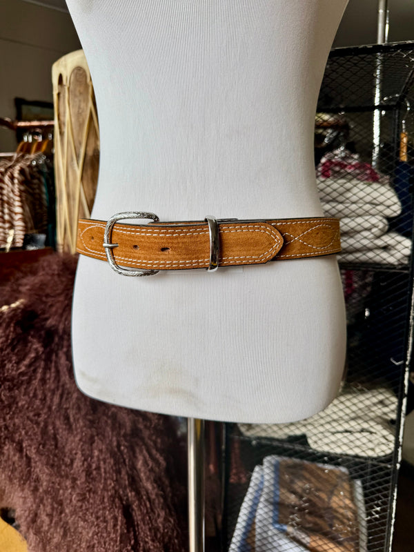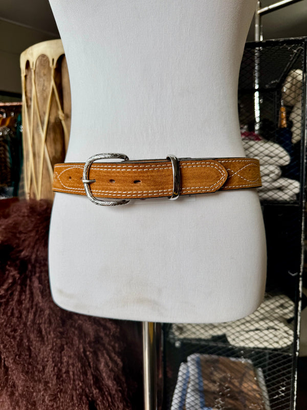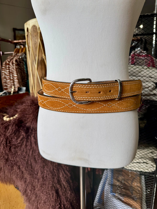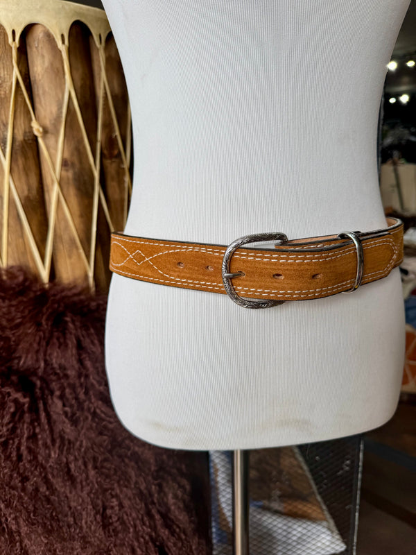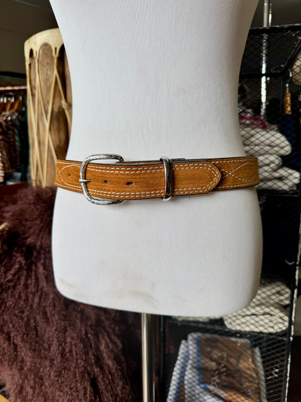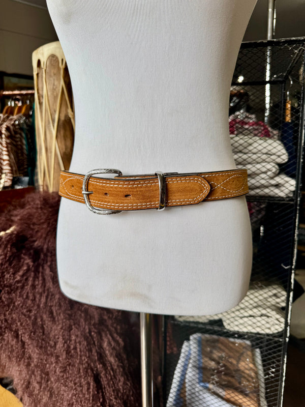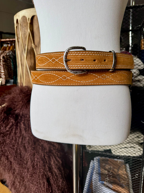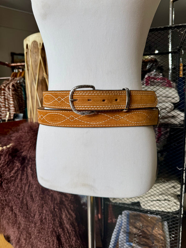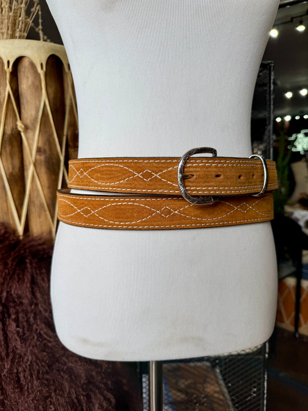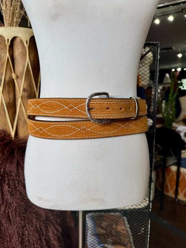 Toast Suede Rough Out Gunslinger Stitch Belt by Double J Saddlery