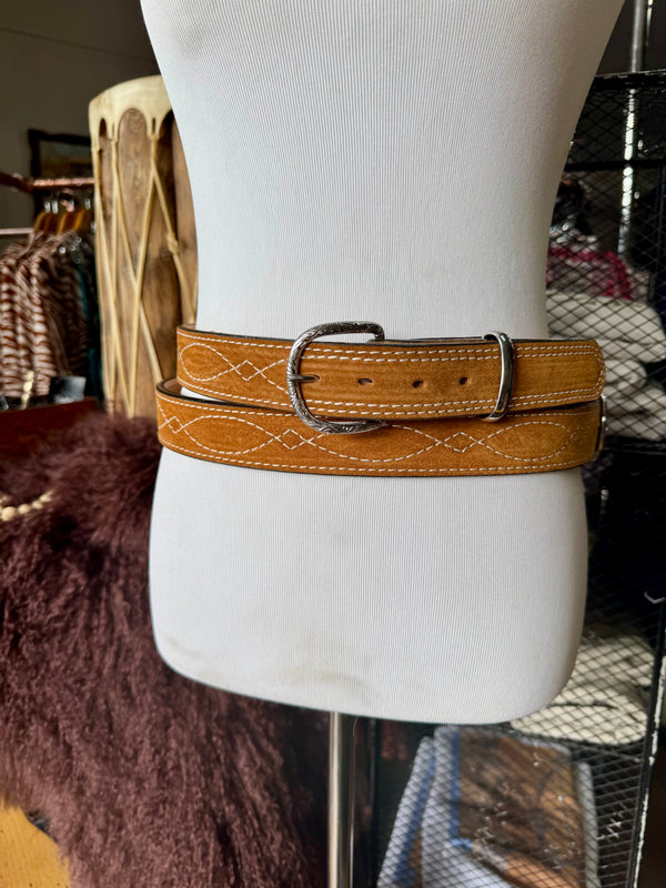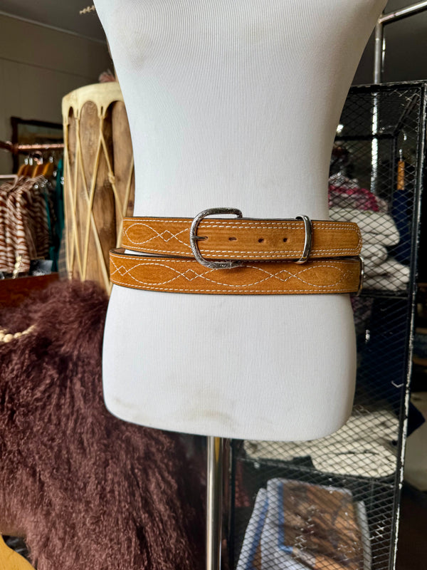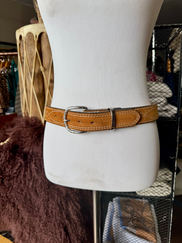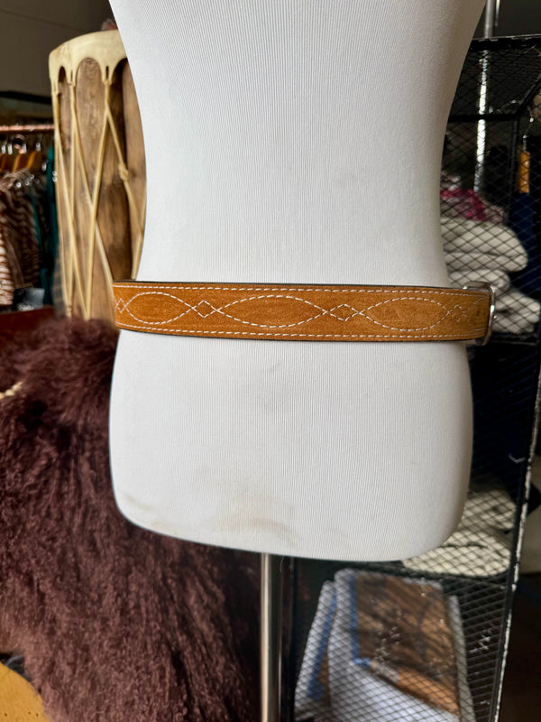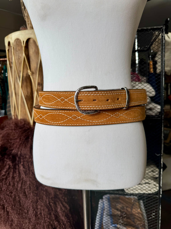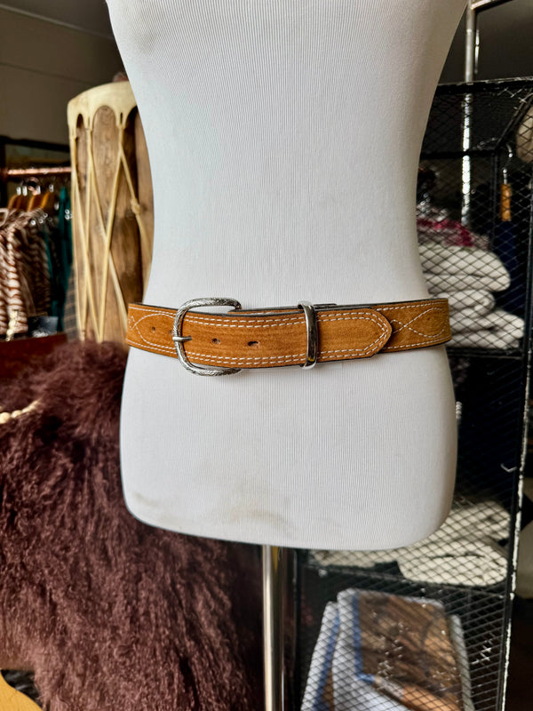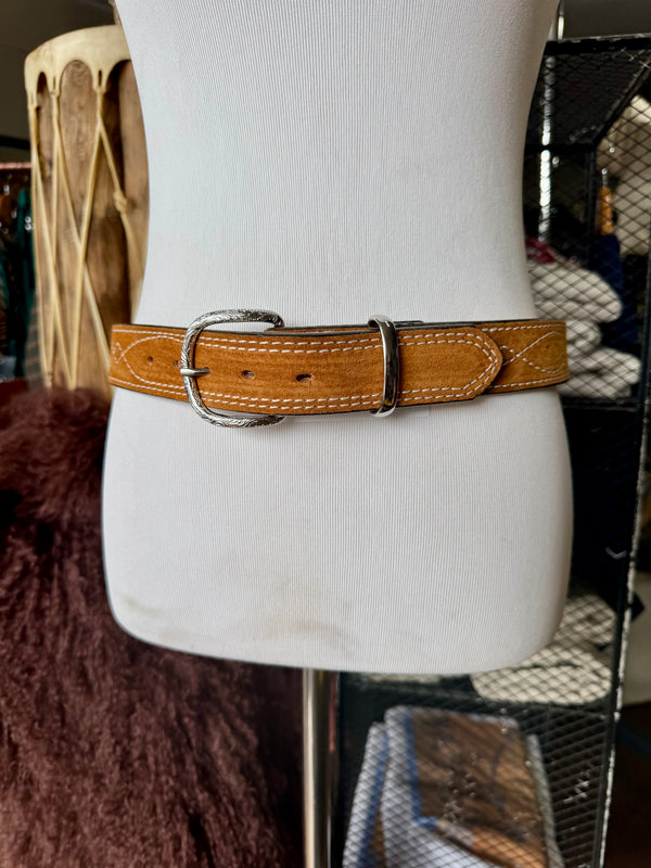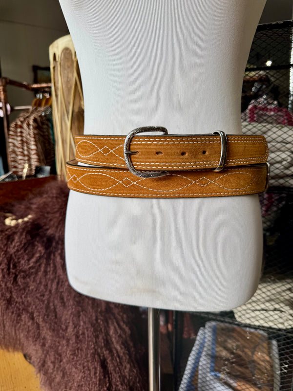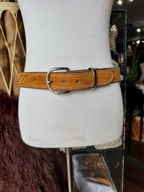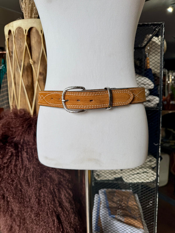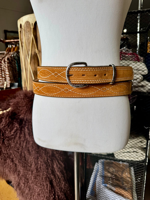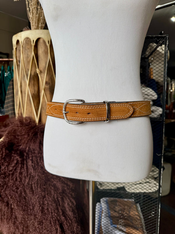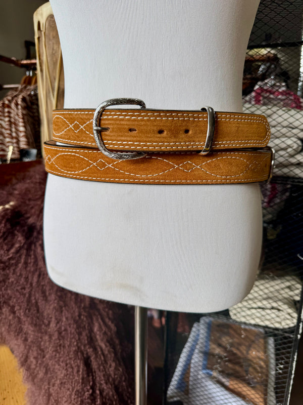 Toast Suede Rough Out Gunslinger Stitch Belt by Double J Saddlery