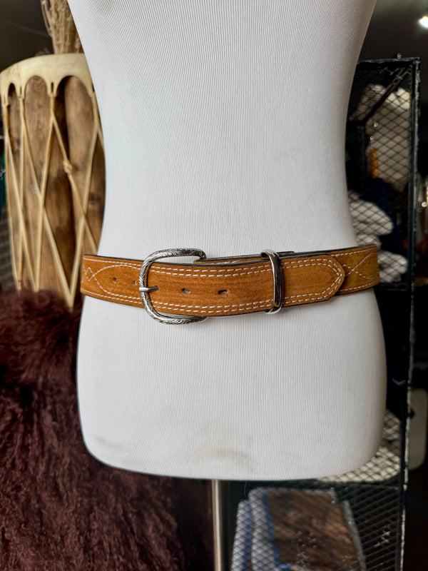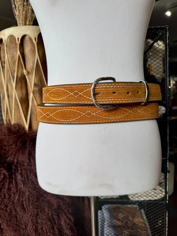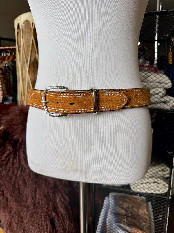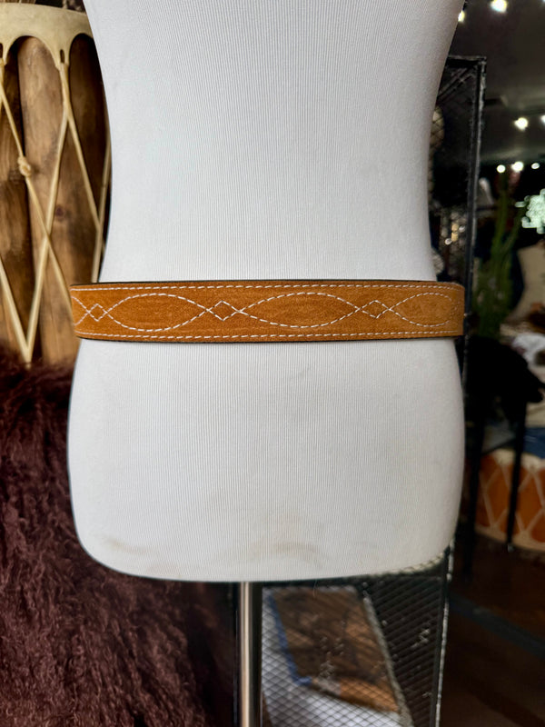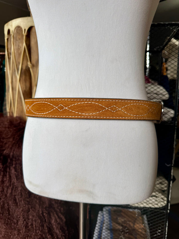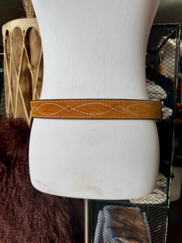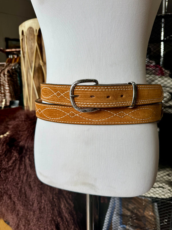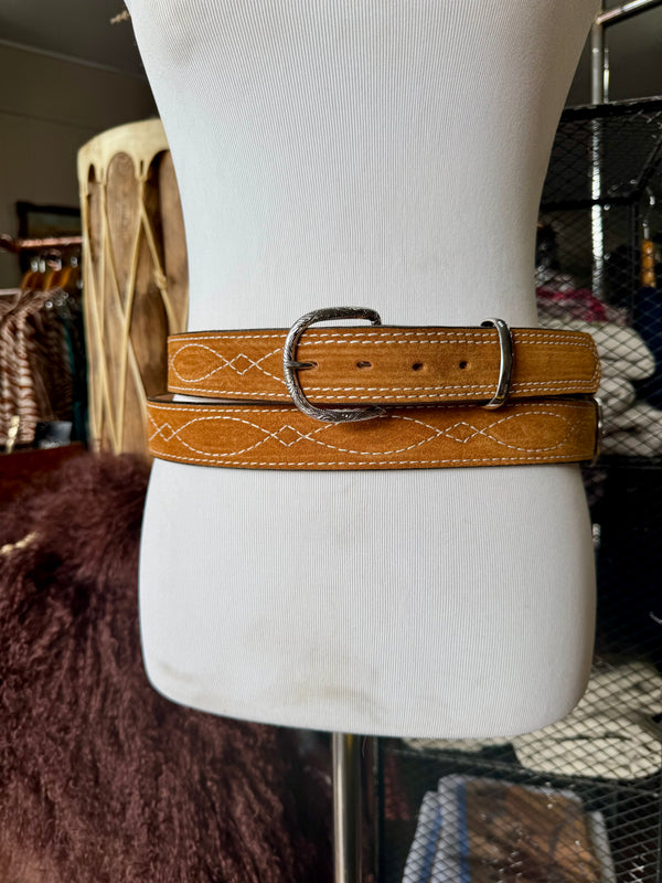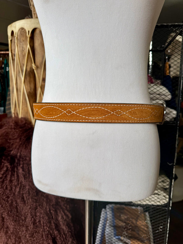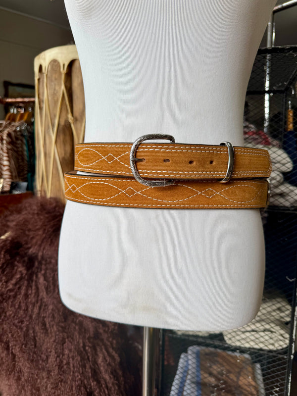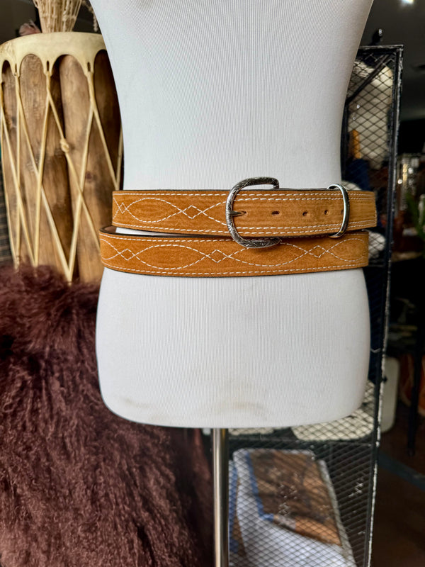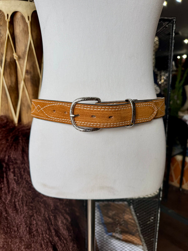 Toast Suede Rough Out Gunslinger Stitch Belt by Double J Saddlery